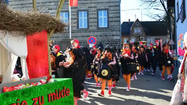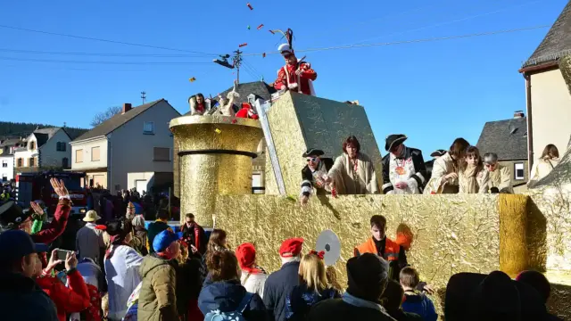 Wehr Zum Karnevalsumzug in die Karnevalshochburg Wehr am Rosenmontag zog es wieder zahlreiche Besucher nach Wehr. Schon vor dem Umzug bot sich den Wehrer Tollitäten Prinz Kurt von Hobel und Span und Hobel und Prinzessin Helga von Salben und Tröpfchen ein beeindruckendes Bild auf der Kellerei. Sie thronten auf Ihrem Prinzenwagen, der ihrem Namen entsprechend gestaltet wurde, in einem überdimensionalen Hobel und Mörser.