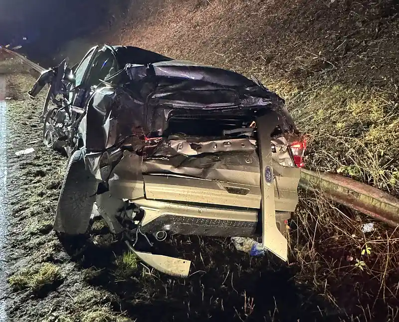 Ein Ford Mondeo war mit hoher Geschwindigkeit in Richtung Koblenz unterwegs. Zwischen der Bengener Brücke und der Ahrtalbrücke fuhr der 49‑jährige Fahrer aus bislang ungeklärter Ursache auf einen vorausfahrenden Ford Kuga auf. Der mit zwei Personen besetzte SUV überschlug sich und kam im Bankett zum Stehen.