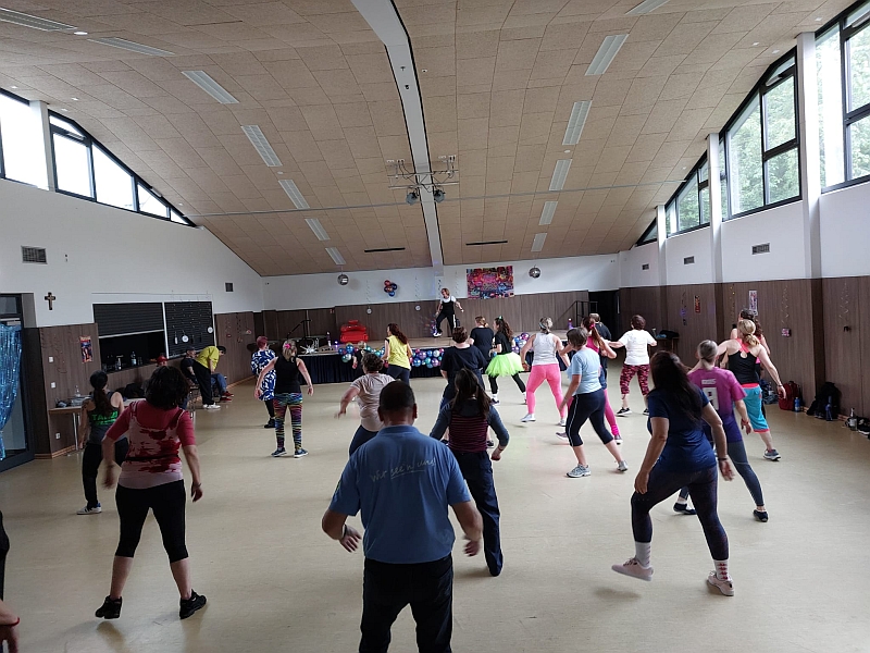 Oberdürenbach / Hohenleimbach. Am 7. Juni wurde die Königsseehalle in Oberdürenbach zur bunten Tanzfläche: Unter dem Motto „Zurück in die 90er“ fand dort ein energiegeladener Zumba-Abend statt – bereits zum fünften Mal als Benefizveranstaltung organisiert von Zumba-Trainerin Judith Müller und ihren beiden Zumba-Gruppen.